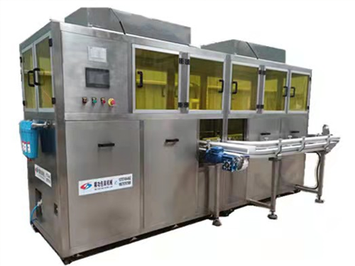 DCQ250/1000型夾式洗瓶機主要用于瓶型規格較多的生產廠家,其操作相當便利,瓶子正立進入氣洗機,便于人工或者自動上瓶;瓶子進入機器后自動翻轉180度,瓶口朝下,便于徹底清洗及收集污染物;清洗后,瓶子再翻轉180度正立輸送出清洗機,有利于塑料瓶收集或者銜接灌裝線。…
